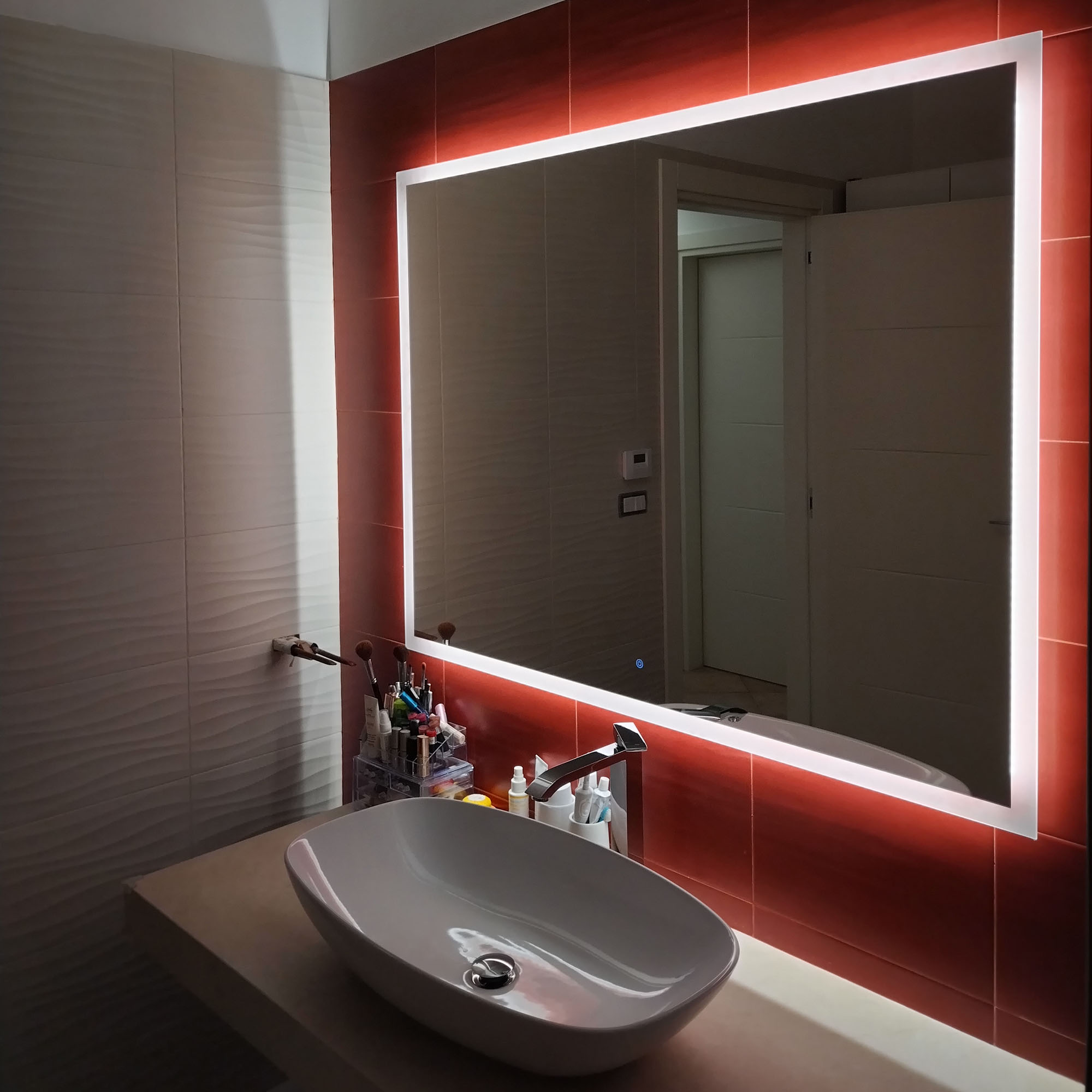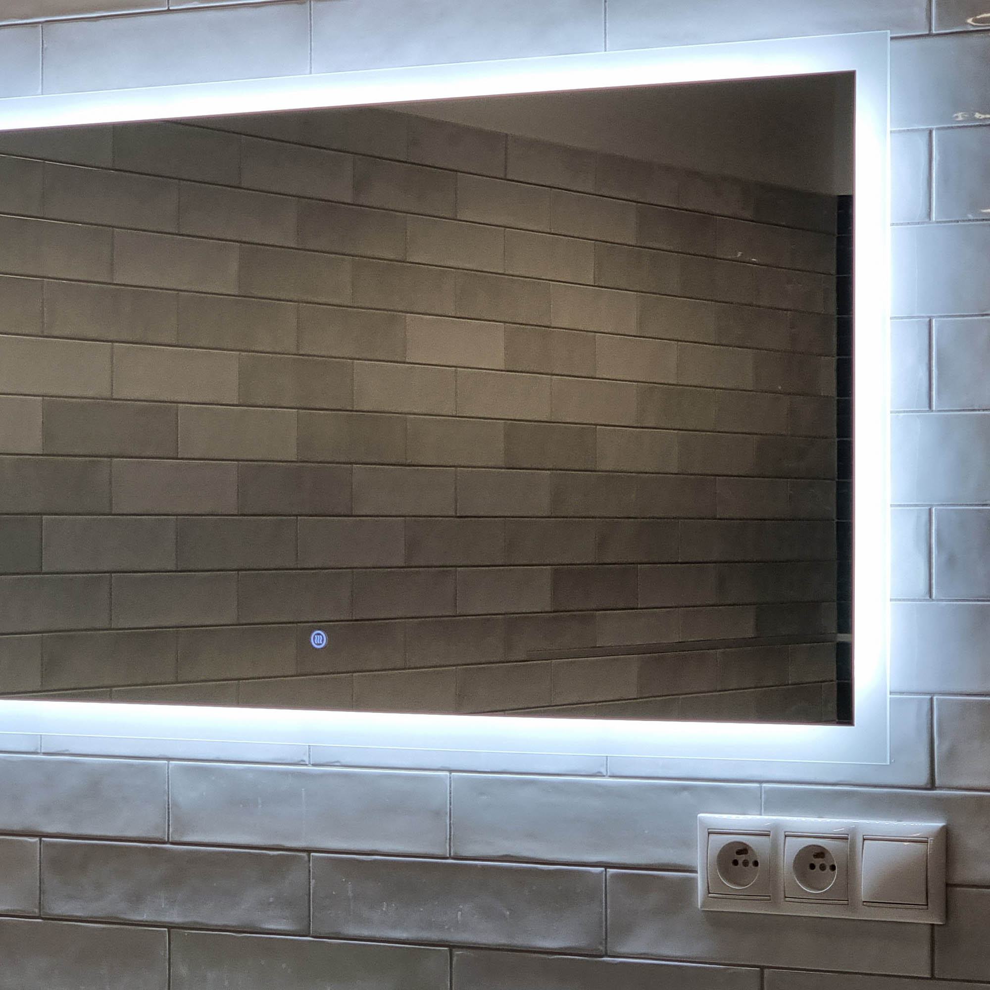 Rundt speil med LED-belysning E2 er ikke sandblåst. Det har LED-bakgrunnsbelysning. Speilet har en ren og blank glassflate, også langs kanten.